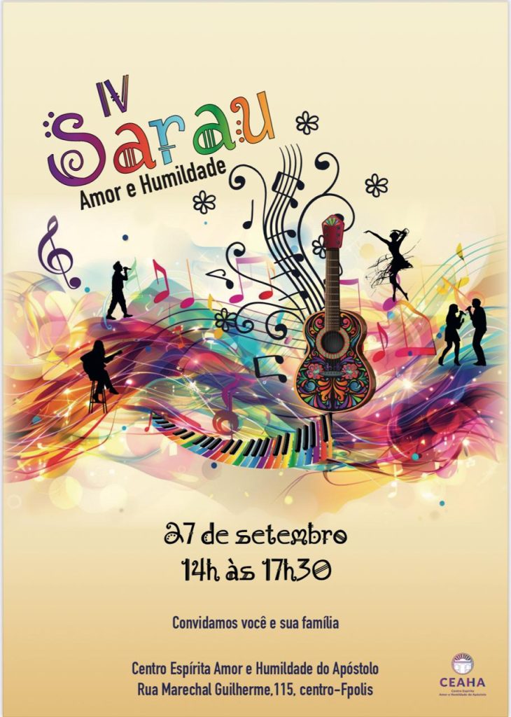 Neste ano de 2025, teremos o 4º Sarau Espírita Amor e Humildade, uma oportunidade especial para a comunidade se reunir e vivenciar a arte espírita.