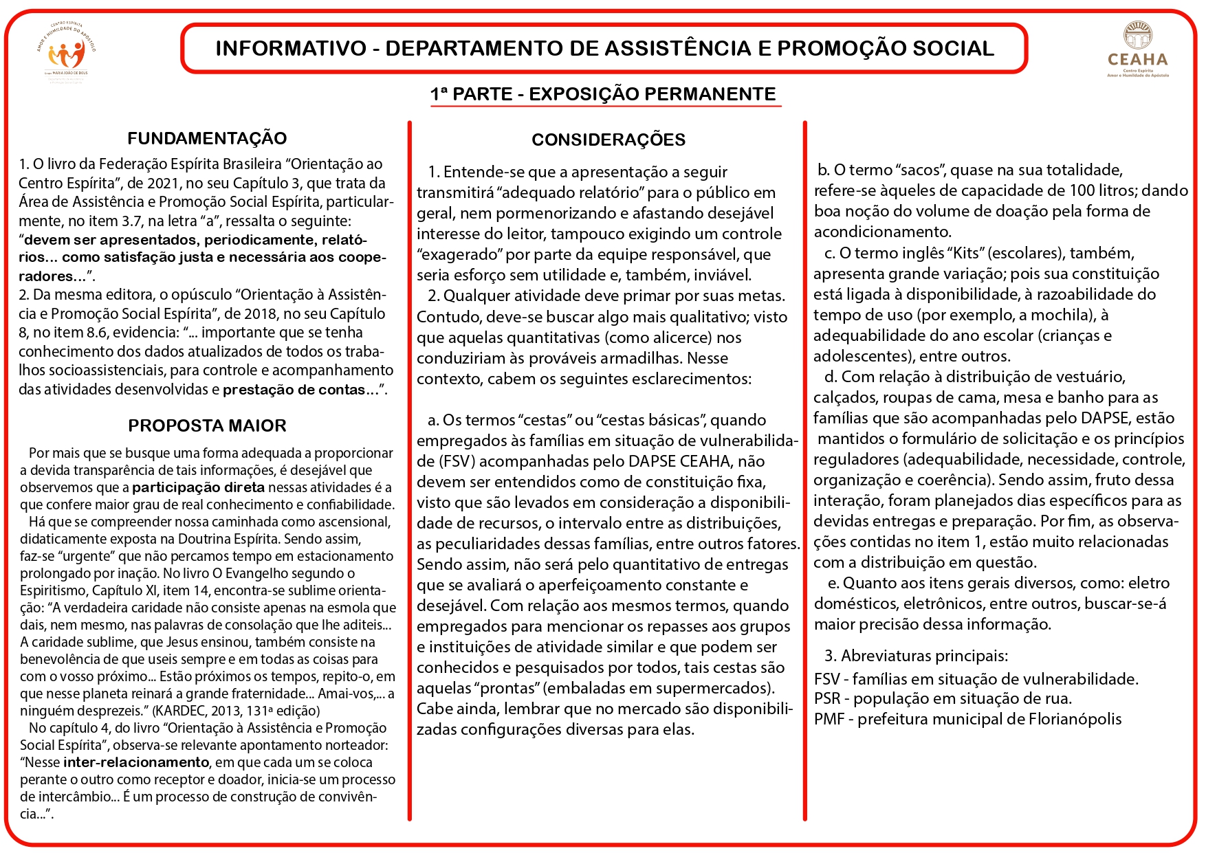 O Centro Espírita Amor e Humildade do Apóstolo disponibiliza trimestralmente o informativo — Prestação de Contas – DAPSE — cujo objetivo é transparecer as doações através da prestação de contas.